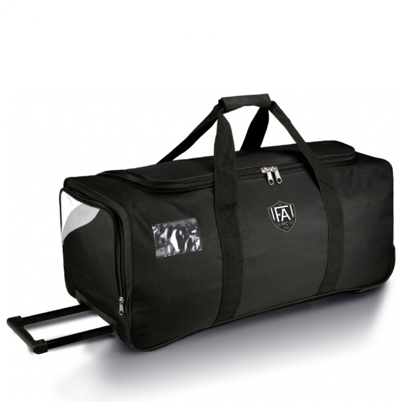 Sac de sport trolley grande taille 70cm en polyester 600D, grande ouverture sur le dessus, compartiment range chaussures sur le côté, lanières renforcées (largeur 5 cm) tout autour du sac.