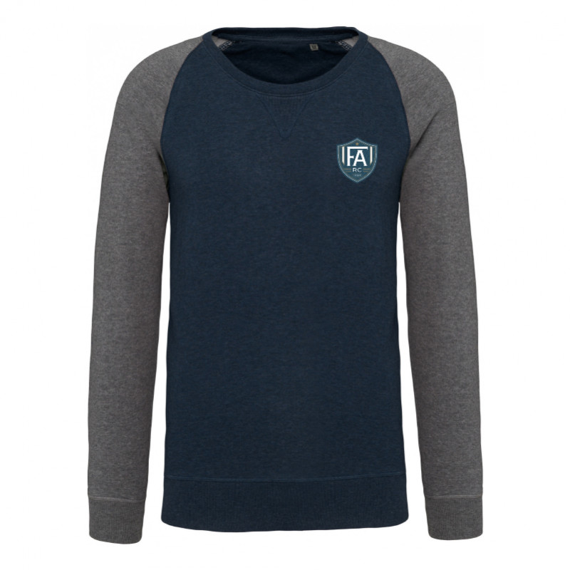 Sweat-shirt bicolore 80% coton biologique et 20% polyester, 300 g/m², OCS Blended contrôlé par Ecocert Greenlife. Molleton non gratté (French Terry). LST (Low Shrinkage Terry). Bord-côte col, poignets et bas de vêtement. Bande de propreté chevron intérieur col et application en V à l'encolure.