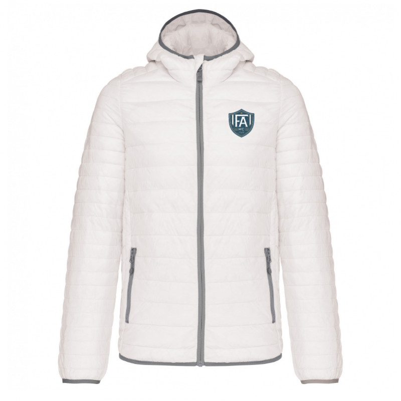 Doudoune 100% polyamide 340g/m². Garniture intérieure polyester. Chaude et ultralégère. Compressible dans son sac de rangement. 2 poches zippées devant.